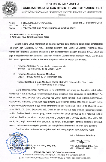 PELATIHAN STATISTIKA PARAMETRIK - NONPARAMETRIK DAN SEM Detail